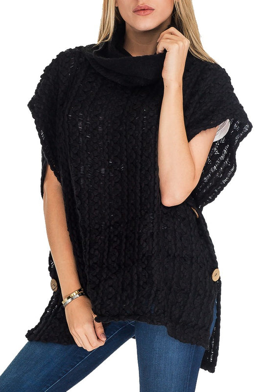 Cashmere Feel Turtle Neck w/ Button Design Poncho